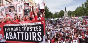 No sábado, centenas de ativistas dos direitos animais de diversos grupos marcharam pelas ruas de Paris pedindo o fechamento de todos os matadouros. Na manifestação a favor da libertação dos animais da exploração humana, e que recebeu o nome de Marcha Vermelha, os ativistas, que usavam camisetas vermelhas, soavam tambores e gritavam frases contra a exploração animal.