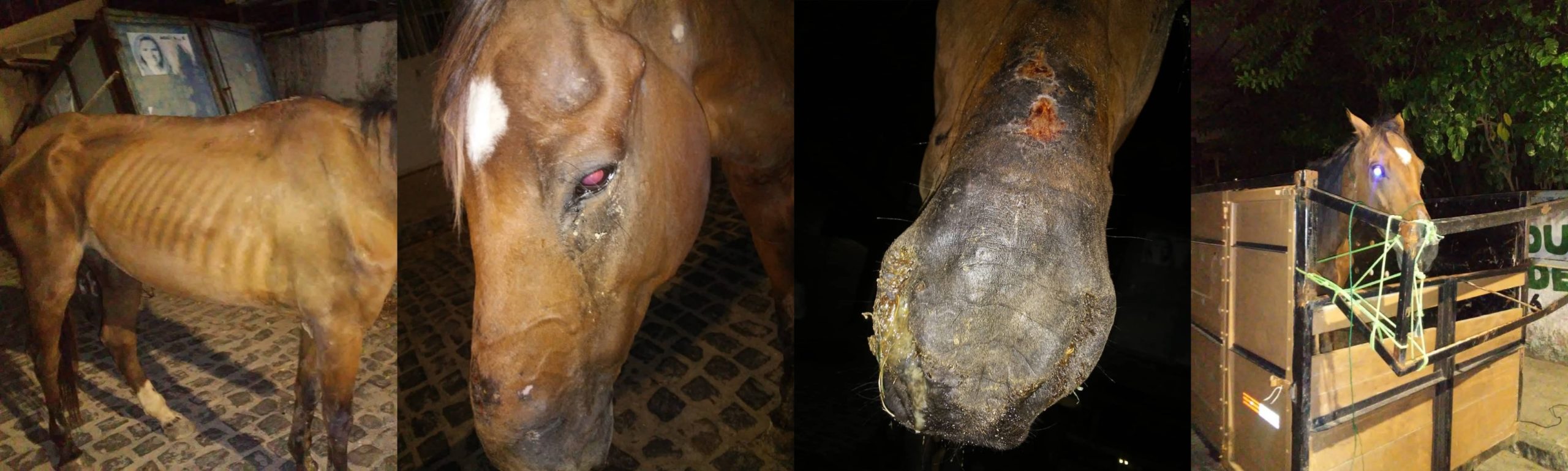“Mais uma vez, os animais sendo vítimas da crueldade humana. O cavalo foi abandonado em grave estado de maus-tratos. Nos informaram que o animal perambulava há dias, chegando a cair nas ruas de tanta fraqueza”, informam.