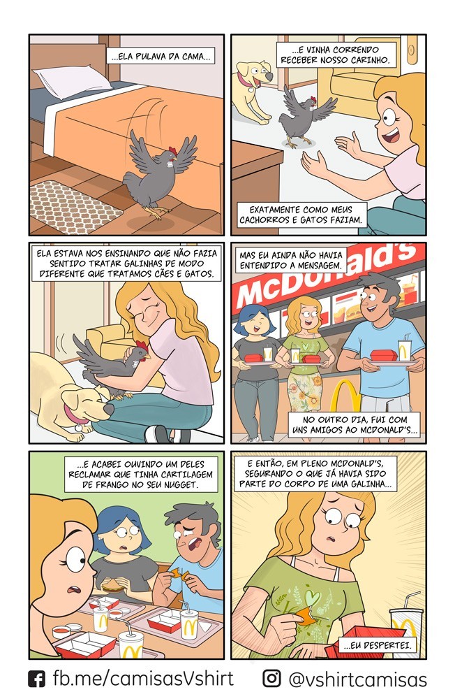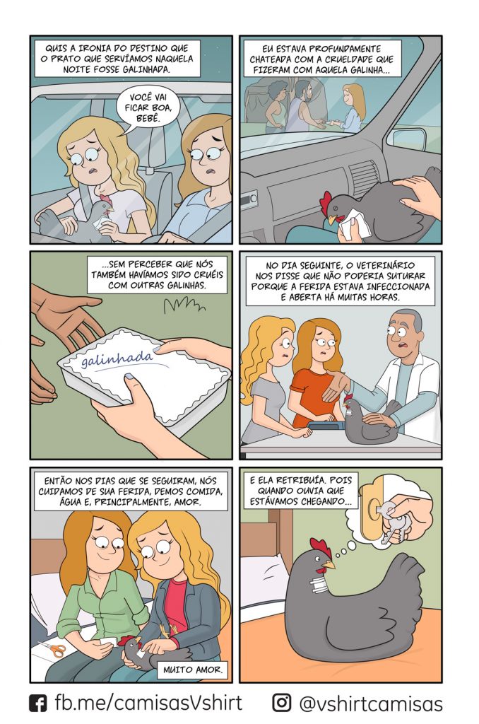Sim, e assim os “Quadrinhos Veganos”, como batizei, acabou por tomar um novo rumo. Talvez eu siga por essa linha de “quadrinhos verdade” por mais um tempo, ou talvez pare de produzir. É preciso dedicar muito tempo à cada história e fica difícil manter essa rotina quando o trabalho não é remunerado. Mas enfim, evito fazer muitos planos nesse sentido. O tempo dirá.