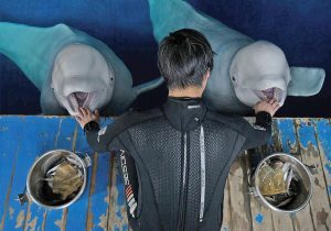 Atualmente, Little White e Little Grey que vivem em Xangai, na China, estão participando de um treinamento de respiração submersa, já que não estão habituadas à realidade natural dos animais de sua espécie. O que facilita esse trabalho é que as baleias belugas são conhecidas pela inteligência e sensibilidade, além de serem animais sociais.