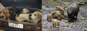 Alarcón destacou também que caçadores, chamados “eufemisticamente” de controladores, portando armas de fogo ou brancas, incluindo facas de grandes dimensões, usam os cães para encurralar os javalis que, sob estresse gigantesco, acabam atacando os cães que são usados como intermediários na caça.