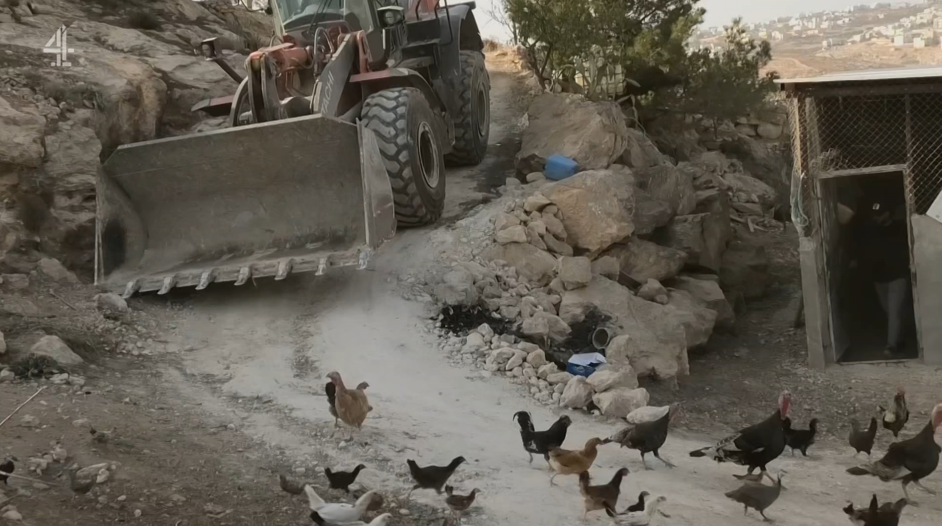 Há imagens de destruição de casas de palestinos que são seguidas pela chegada de pás carregadeiras que esmagam não apenas os espaços habitados também por animais como os próprios animais. Mesmo diante das súplicas dos moradores, soldados israelenses não veem problema em esmagá-los.