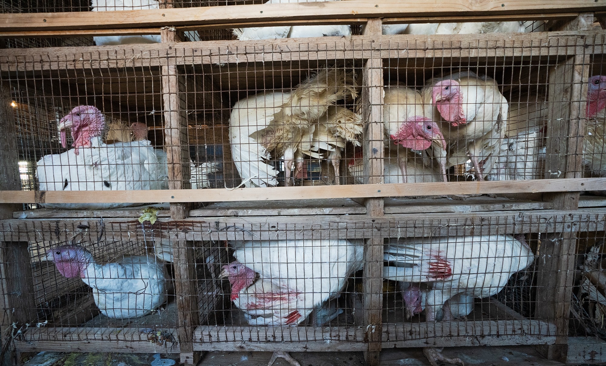 Nunca mais comeu peru no Natal. Em nenhum dia. Bandejas, embalagens a vácuo e rolos fazem parecer que não há nada de errado. Que tal um embutido? Peito de peru? Não. Sabia que os animais morriam. Como achar que não? Carne só pode vir da matança. Mas dava-se o direito de não pensar a respeito para não interferir no paladar.
