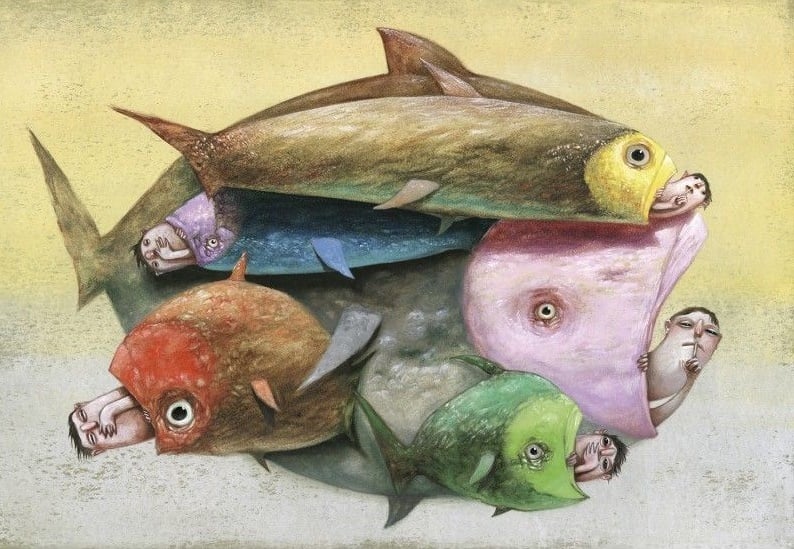 Que tal sofrer sem sofrer? Ou não sofrer sofrendo? “Como fazer-me entender?” Começou a se debater na água, estirando os pés juntos, com as pontas mirando oposto, como se fossem cauda. Não adiantou. “Peixei sem peixar”, disse antes de afogar pela última vez, com olhos inchados e doloridos.