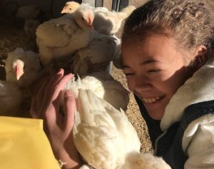 Jewel conta que não poderiam deixar que os franguinhos fossem mortos, já que seria impossível encontrar quem os adotasse imediatamente. “Eles gostam de mostrar as coisas que encontram e ficam muito empolgados em poder compartilhar isso com você”, justifica em referência à sensibilidade e inocência das aves.