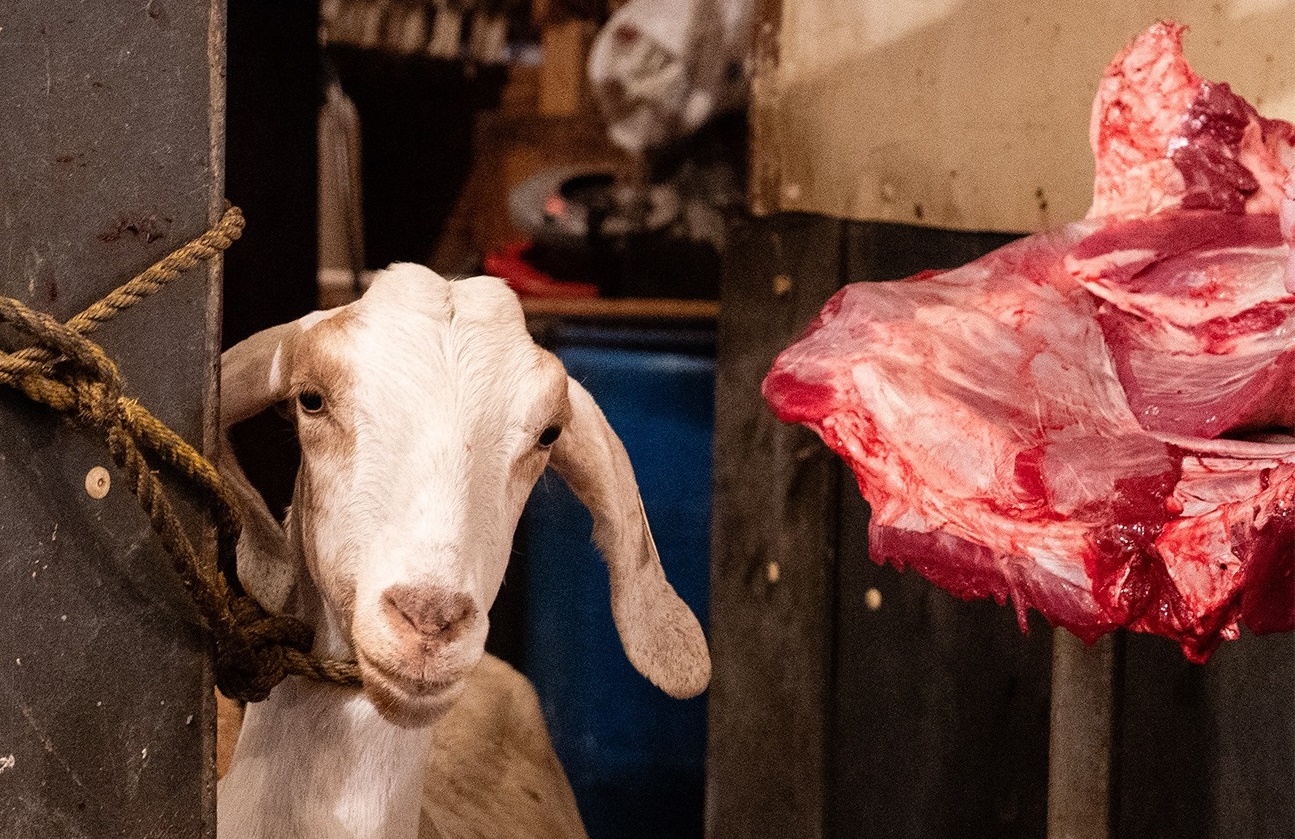 A criança chorou quando viu a cabra sangrando. Ouviu várias vezes que era para o Natal. Cortaram a cabra em…