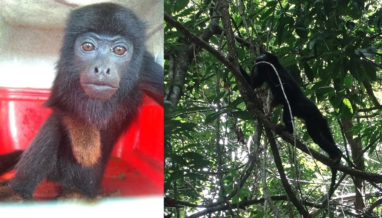 Ameaçado de extinção, um guariba-de-mãos-ruivas foi encontrado em uma área de plantação de feijão e cana-de-açúcar em Matraca, no norte…