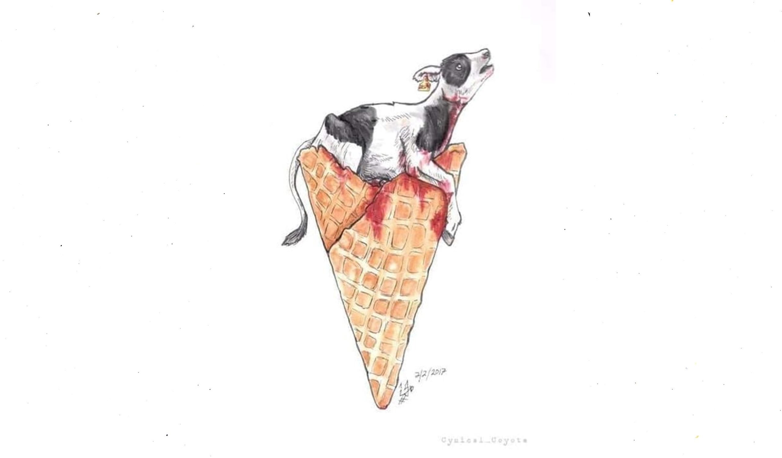 Sonhou com um bezerro preso numa casquinha de sorvete. Não havia sorvete, só o pequeno bovino entalado que sangrava sem parar.
