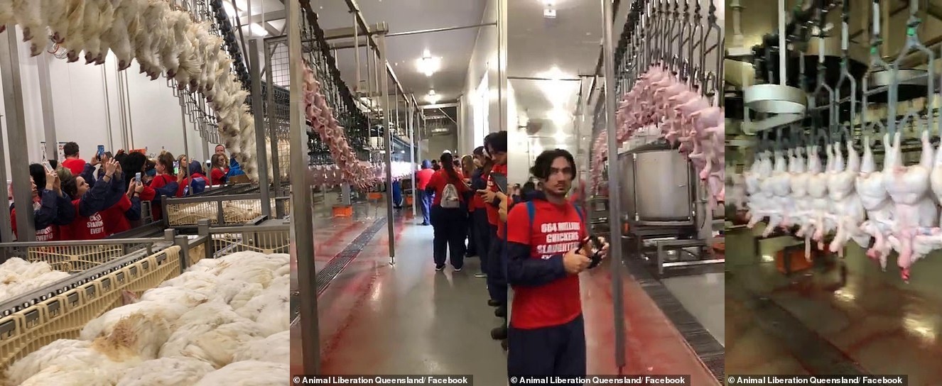 De acordo com informações do Daily Mail, um grupo de ativistas veganos invadiu um matadouro de frangos na última sexta-feira em Redland, em Queensland, na Austrália. O objetivo foi chamar a atenção para a realidade das aves criadas para consumo.